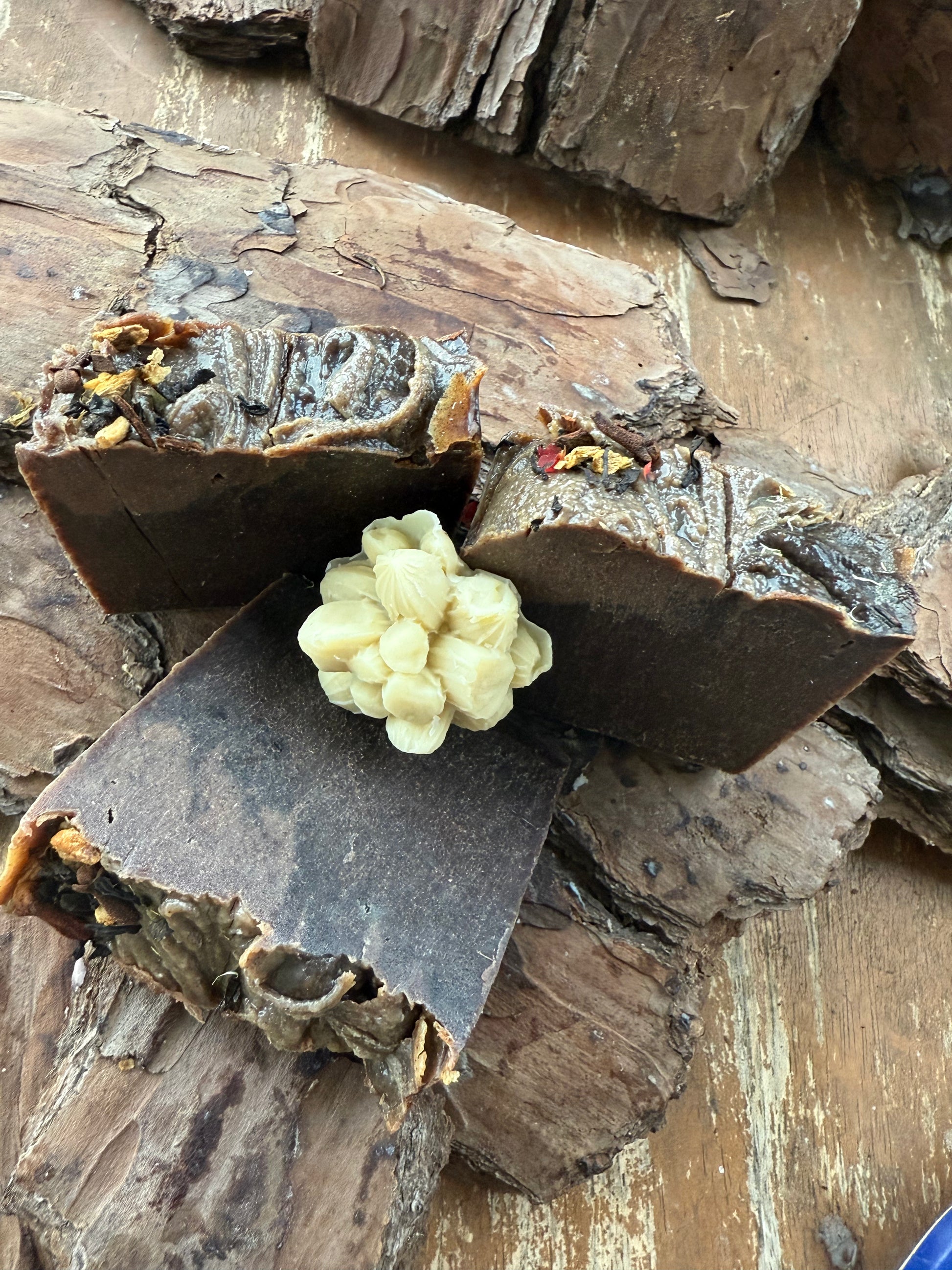 This soap has a yummy Chai Tea Scent and is made with organic oils like, Coconut, Olive and Castor. As well as Shea! You will adore not only the smell of this amazing soap, but also the way it makes your skin appear and feel.
